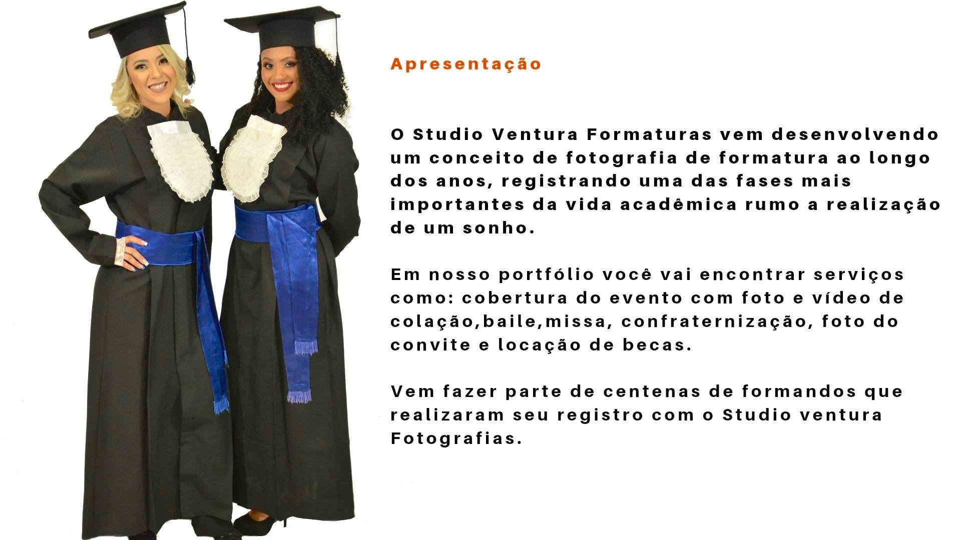 Olá! Somos o Studio Ventura, sua escolha para fotografar a formatura!
